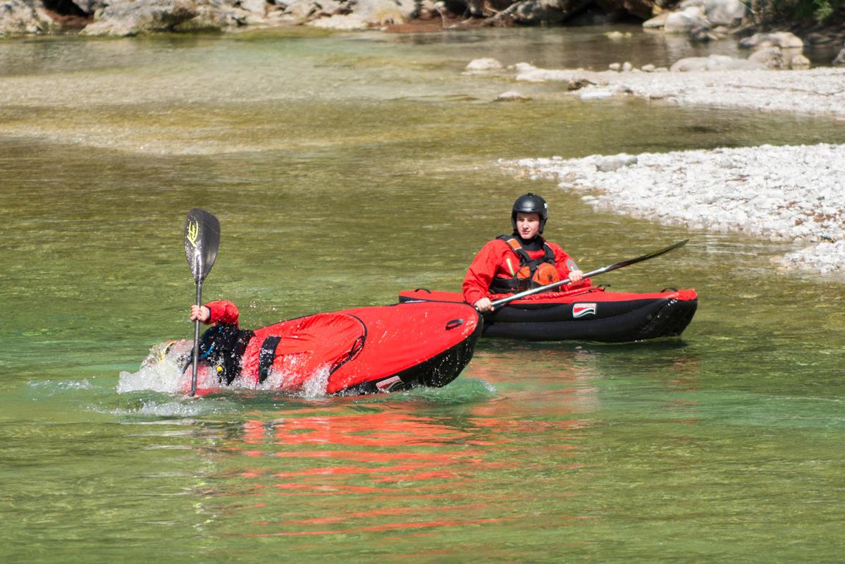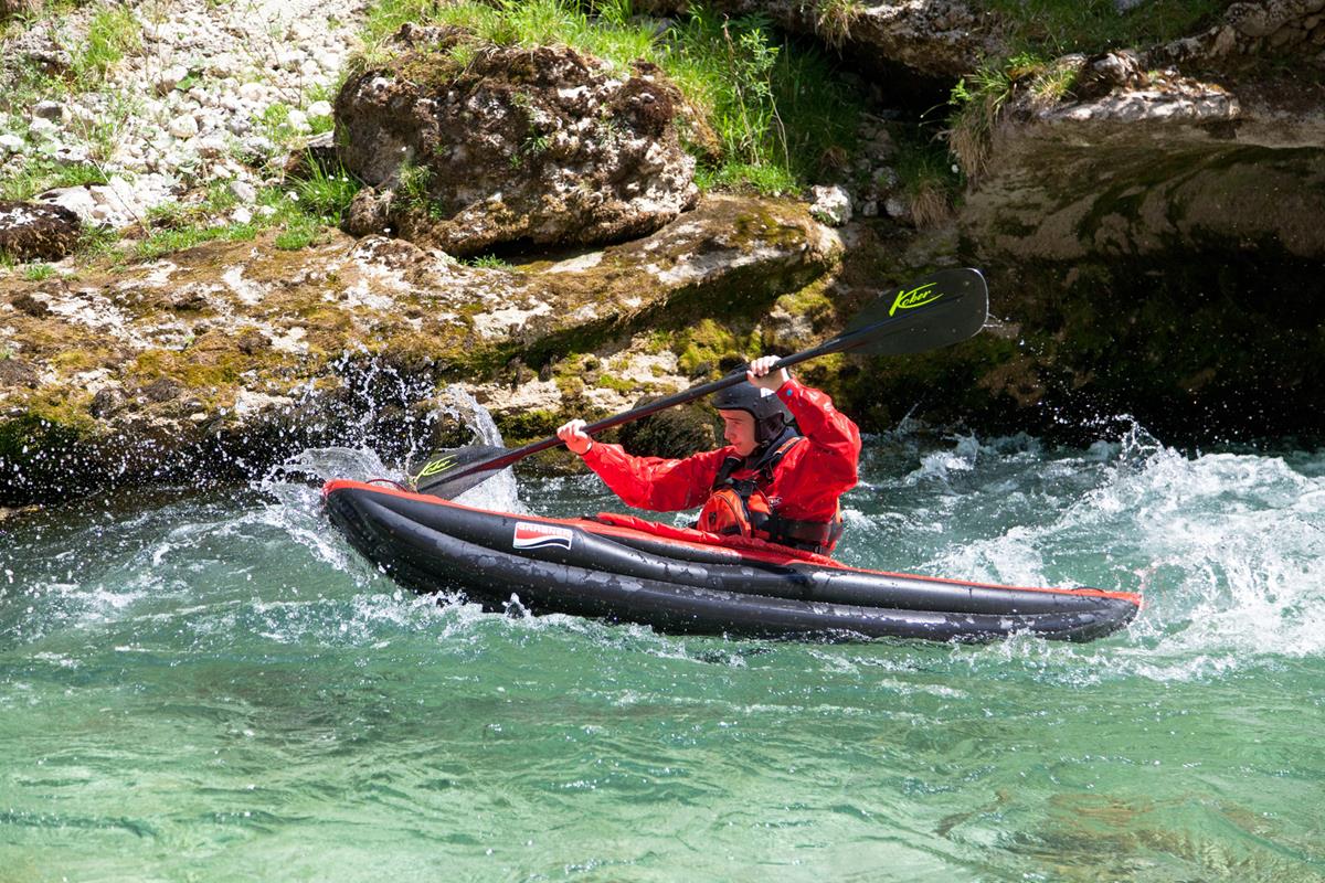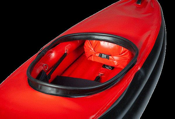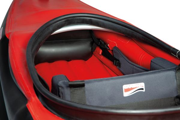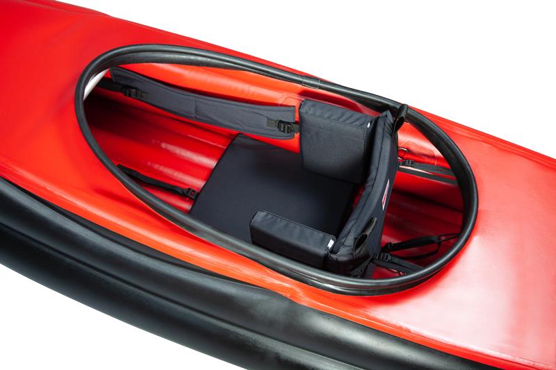 - Stabile Form: Der flache, breite Boden sorgt für hohe Anfangsstabilität, während die voluminösen Seitenschläuche das Kajak formstabil und dennoch reaktionsschnell machen.