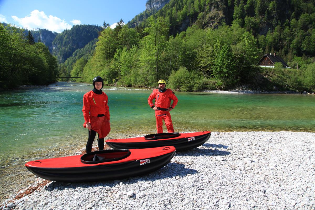 Grabner baut seit 1975 handgefertigte Schlauchboote in Haag, Niederösterreich. Was das Unternehmen von anderen Herstellern unterscheidet: kein PVC. Grabner-Boote bestehen aus einer dreischichtigen Kombination aus Naturkautschuk innen und EPDM-Autoreifengummi außen – das Material liefert Continental nach höchsten EU-Umweltstandards. Die Hülle ist extrem widerstandsfähig gegen Felsen und Stege und kommt mit 7 Jahren Garantie. Das Sortiment reicht vom Wildwasserkajak Hype über Touren- und Seekajaks (Escape 1 & 2) bis hin zu Kanadiern und Motorbooten. Alle Boote werden in Österreich von Hand gefertigt.