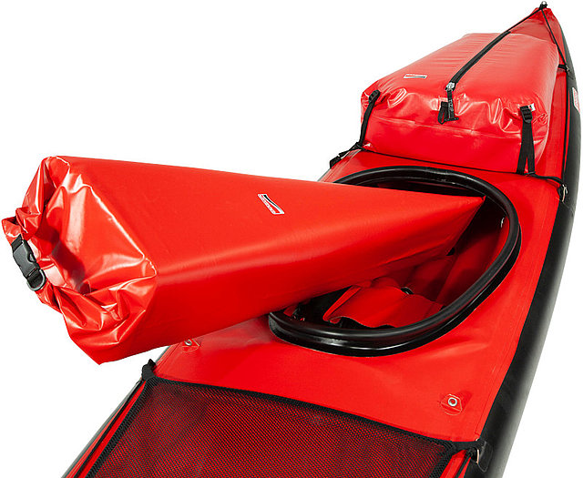 Der Rollsack passt genau unter das Bug- und Heckverdeck bei den Modellen ESCAPE 1 und 2. Hergestellt aus wasserdichtem Material, rundum verschweißt und mit schwellwasserfestem Rollverschluss versehen.