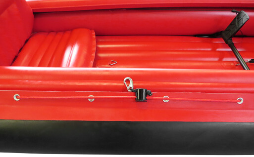 Am ADVENTURE SL wird besonders geschätzt, dass es wirklich alles bietet, was sich Familien, Paddelanfänger bis Profis, Wildnisreisende und schwergewichtige Wassersportler von einem Boot erwarten: leichter Lauf gute Richtungsstabilität hohe Kentersicherheit viel Platz im Boot (Stauraum für Gepäck) und vor allem die Vielseitigkeit Mit dem Torqeedo Heckmotor ist das ADVENTURE ein geräuschloses Motorboot mit höchstem Fahrkomfort. Ganz entscheidend ist aber auch die Sicherheit, die das unverwüstliche Material garantiert und die unglaublich lange Lebensdauer. Durch die längliche Kanadier-Form hat das ADVENTURE SL eine langeWasserlinie. Das garantiert einen hervorragenden Geradeauslauf ohne dass ständig korrigiert werden muss. Besonders Anfänger oder Ungeübte wissen das sehr zu schätzen und sind von den Fahreigenschaften hellauf begeistert. Die hohen Seitenwände schaffen zusätzlich Platz für Zuladung, bewahrenKleinkinder vor dem Herausfallen und schützen gegen Wellenschlag. Bug und Heck sind mit kräftigen Schutzleisten ausgestattet, die beim Anprall die Kräfte aufnehmen. Das Kurzverdeck am Bug und Heck schützt vor eindringendem Spritzwasser.Rund um Bug und Heck befinden sich Trage-Haltegurte zum Tragen, Treideln und Anhalten bei einer Kenterung. Im großen Gepäcksraum findet auch die umfangreichste ADVENTURE SL Ausrüstung sicher Platz. Für die hermetische Befestigung der Spritzdecke (x) sind an den Seitenwänden Lochleisten aufvulkanisiert. An diesen kann auch zusätzliches Gepäck befestigt werden. Die ideale Farbgebung ist gut durchdacht. Die schwarze Außenhaut (durch hohen Rußanteil besonders zäh und widerstandsfähig) fügt sich unauffällig in die Natur. Die rote Innenhaut kann als Signalfarbe im Notfall lebensrettend sein. Mit 4 Sitzlöchern kann das ADVENTURE SL zu viert gefahren werden.
