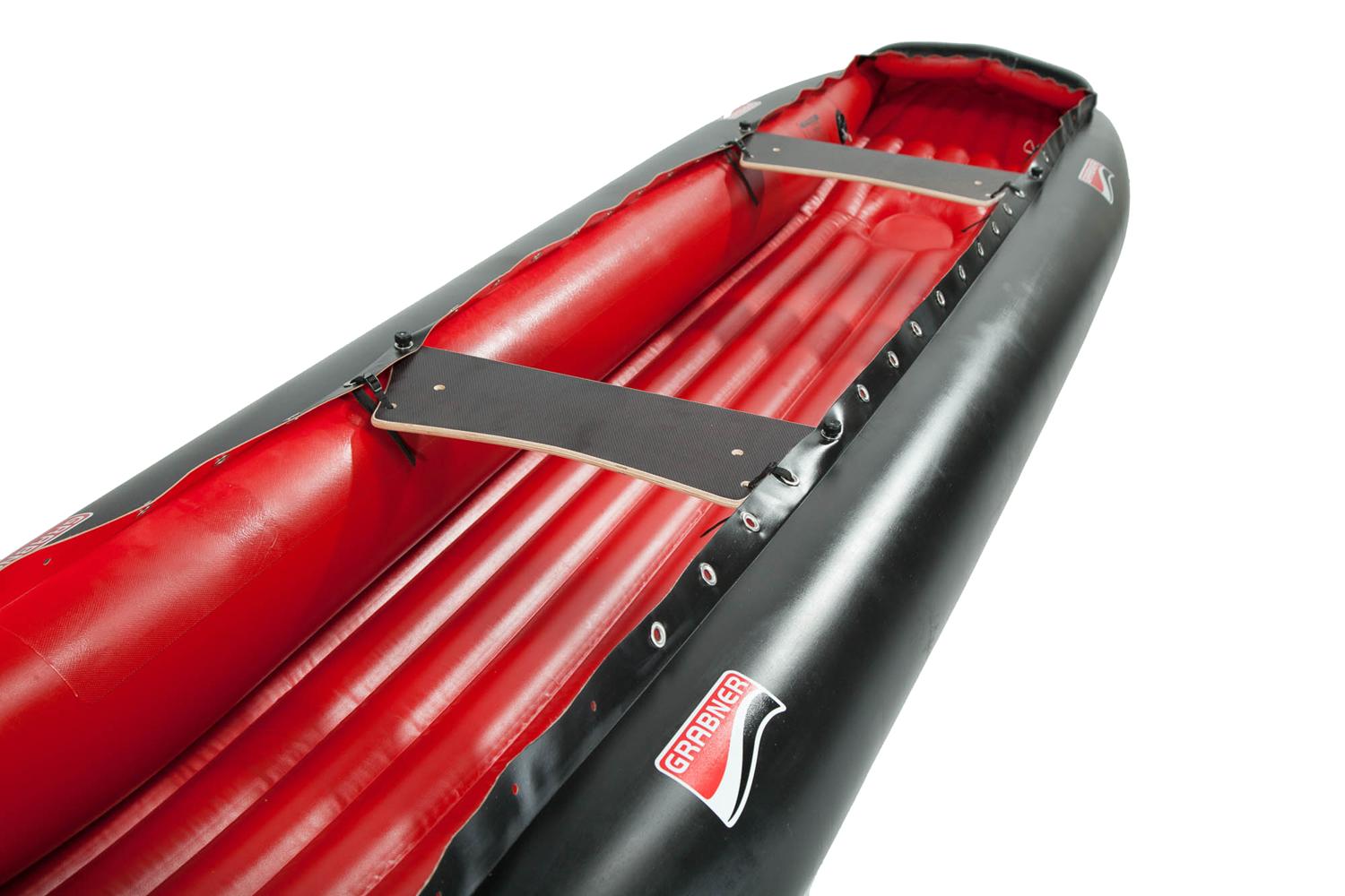 Grabner baut seit 1975 handgefertigte Schlauchboote in Haag, Niederösterreich. Was das Unternehmen von anderen Herstellern unterscheidet: kein PVC. Grabner-Boote bestehen aus einer dreischichtigen Kombination aus Naturkautschuk innen und EPDM-Autoreifengummi außen – das Material liefert Continental nach höchsten EU-Umweltstandards. Die Hülle ist extrem widerstandsfähig gegen Felsen und Stege und kommt mit 7 Jahren Garantie. Das Sortiment reicht vom Wildwasserkajak Hype über Touren- und Seekajaks (Escape 1 & 2) bis hin zu Kanadiern und Motorbooten. Alle Boote werden in Österreich von Hand gefertigt.