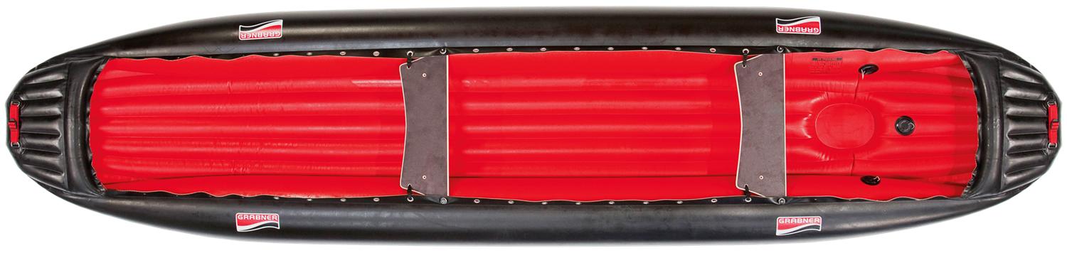 Grabner Outside Die Form und das Design verleihen dem OUTSIDE nicht nur sein charakteristisches Aussehen, sondern auch seine Wildwasser-Fahreigenschaften. Durch das stark aufgebogene Bug und Heck bohrt sich das OUTSIDE nicht in die Wellen, sondern gleitet auf diese auf. Die symmetrische Form ermöglicht im Bedarfsfall auch problemlos, mit dem Heck nach vorne fahren zu können.Seit Erfindung des OUTSIDE - hat dieses einzigartige Boot tausende begeisterte Besitzer in aller Welt gefunden. Das Original- OUTSIDE ist das vielseitigste Boot, das es gibt. Im Wildwasser ist es unschlagbar und daher auf Flüssen aller Kontinente zu Hause. Das Grabner Outside besitzt folgende Merkamle: Die kurze Wasserlinie zwischen Bug und Heck macht das OUTSIDE äußerst drehfreudig. Rascher Richtungswechsel bei verblockten Flüssen sind ein Kinderspiel. Die parallele Seitenform ermöglicht, dass die Sitzbretter 15-fach exakt nach Personen- Bedarf und für optimale Trimmung montiert werden können. Die längs- und neigungsverstellbaren Sitze klappen bei Kenterung nach oben. Durch die funktionellen Beschläge mit insgesamt 62 Befestigungsmöglichkeiten - 14 kräftigen Nirosta-D-Ringen, 32 Ösen und 16 Löchern - lässt sich Gepäck sicher im Boot verstauen. Die Trage-Halte- und Treidelgurte - befinden sich rund um Bug und Heck, sind praktisch zum Tragen, Treideln und Anhalten bei Kenterung. Der verschließbare Lenzschlauch leitet Wasser, das ins Boot hineinspritzt permanent ab. So bleibt das OUTSIDE stets manövrierfähig und braucht nie entleert zu werden.Der praktische Roll-Klickverschluss lässt sich im zahmen Gewässer mit einem Handgriff verschließen. Spritz- oder Regenwasser kann entleert werden, ohne das Boot zu entladen. Im Bug/Heck und Bootsmitte - Gepäcksraum findet die komplette Ausrüstung "sicher" Platz. Die ideale Farbgebung ist gut durchdacht. Die schwarze Außenhaut (durch hohen Rußanteil besonders zäh und widerstandsfähig) fügt sich unauffällig in die Natur. Die rote Innenhaut kann als Signalfarbe im Notfall lebensrettend sein. Das bewährte Material - die tausend fach erprobte Bootshaut - ist extrem widerstandsfähig und lässt sich leicht und rasch reparieren. Mit dem OUTSIDE ist Wasserwandern und Wildwasserfahren noch einfacher, sicherer und schöner geworden. Denn das OUTSIDE hat Fahreigenschaften, von denen man bisher nur träumen konnte. Anfänger schätzen die enorme Kenterstabilität. Profis sind von der leichten Manövrierfähigkeit und guten Wasserlage begeistert. Wildwasser bis Schwierigkeitsgrad 6 sind für das OUTSIDE kein Problem. Wer mit dem OUTSIDE verreist, kann fremde Länder, Menschen und Gegenden besonders "leicht" entdecken. Man ist nicht mehr auf das eigene Auto angewiesen. Mit Bus, Bahn oder Taxi geht es zum Ausgangspunkt der Reise. Das Boot ist im Rucksack verpackt und wird auf dem Rücken zum Fluss getragen. Das OUTSIDE als BadebootDas OUTSIDE ist ein tolles Badeboot! 2 Personen liegen bequem im Bug und Heck und nach dem Baden kommt man leicht ins Boot zurück. Das OUTSIDE als Fischer- und JägerbootAlle die am Wasser oder in der Wildnis gute Beute machen wollen, sind im OUTSIDE bestens aufgehoben. Denn es schwimmt unauffällig und bietet genug Platz für die gesamte Ausrüstung. Das OUTSIDE als Lastenkahn200 l Ausrüstung lassen sich im OUTSIDE spielend transportieren, ohne dass Unordnung oder Platzangst entsteht. Die Lösung sind Maß geschneiderte Taschen (x), welche die komplette Ausrüstung auf kleinstem Raum verstauen und trocken halten. Das OUTSIDE als LeihbootFür den Verleih eignet sich das OUTSIDE wegen der hohen Kippstabilität und Sicherheit. Besonders aber wegen der Wirtschaftlichkeit. Denn es hält großen Strapazen eines Dauereinsatzes stand, amortisiert sich rasch und hat einen hohen Wiederverkaufswert.