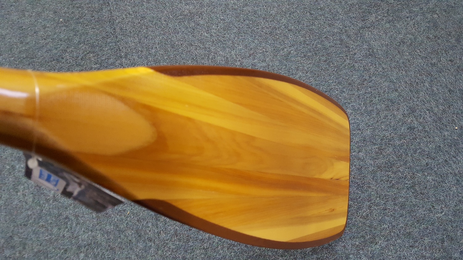 Sehr leichtes, sehr dünnes Holzpaddel aus Zedernholz. Es hat eine umlaufende PU-Schutzkante und ist mit einem Fiberglas/Epoxi Überzug versehen. Ideal zum gefühlvollen Solopaddeln, Freestylen oder gemütliche Touren.