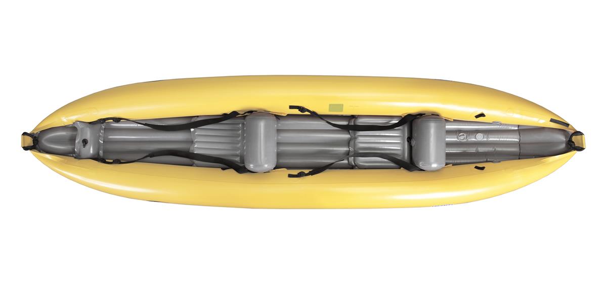 Gumotex Thaya Das revolutionäre Thaya mit einer Kombination aus unserem speziellen Nitrilon-Material und der Dropstitch-Technologie zeichnet durch eine hervorragende Formstabilität und leichte Manövrierung aus. Die einzigartige Verbindung der aufblasbaren Seitenschläuche und der modernen Dropstitch-Technologie schafft eine universelle Kombination, die dem Nutzer einen hohen Komfort und ein leichtes Handling bietet. Das Thaya lässt sich nach einer Bootstour leicht verpacken und ist sehr leicht. Es ist ideal für die Nutzung auf Seen und Flüssen geeignet und lässt sich auch bei Wildwasserstufe 2 noch angenehm fahren. Es kann mit 1 bis 2 Erwachsenen oder mit 2 Erwachsenen und einem Kind gepaddelt werden.*Die Dropstitch-Technologie basiert auf der Verbindung der oberen und unteren Schichten des Gewebes mit Tausenden von Polyesterfasern. Dieses, mit einer luftdichten Beschichtung versehene Gewebe, ist von beiden Seiten mit einem widerstandsfähigen NITRILON®-Material geschützt. Dank der Tausenden Fasern, die die beiden Schichten zusammenhalten, können Produkte aus Drop-stitch einen hohen Druck aushalten. Durch aufpumpen wird das Material sehr fest und kommt der Beschaffenheit eines Festkajaks sehr nahe, wobei das Packmaß weiterhin klein bleibt.