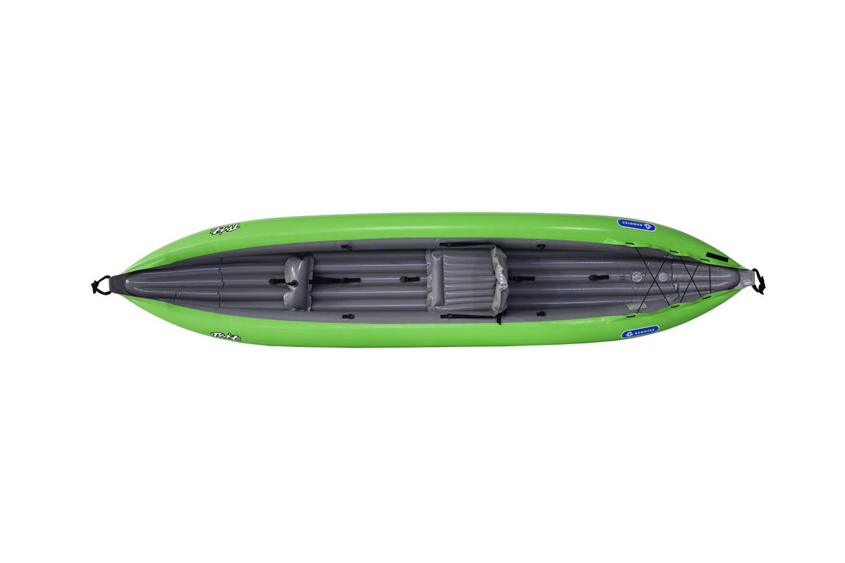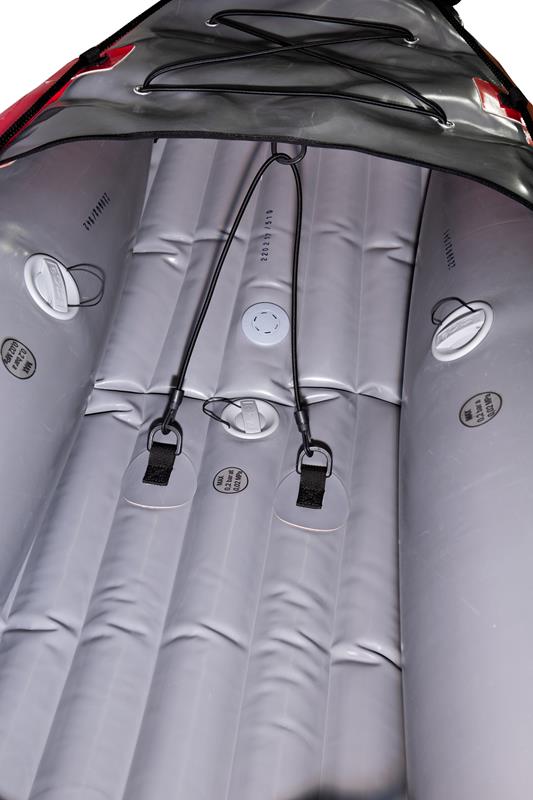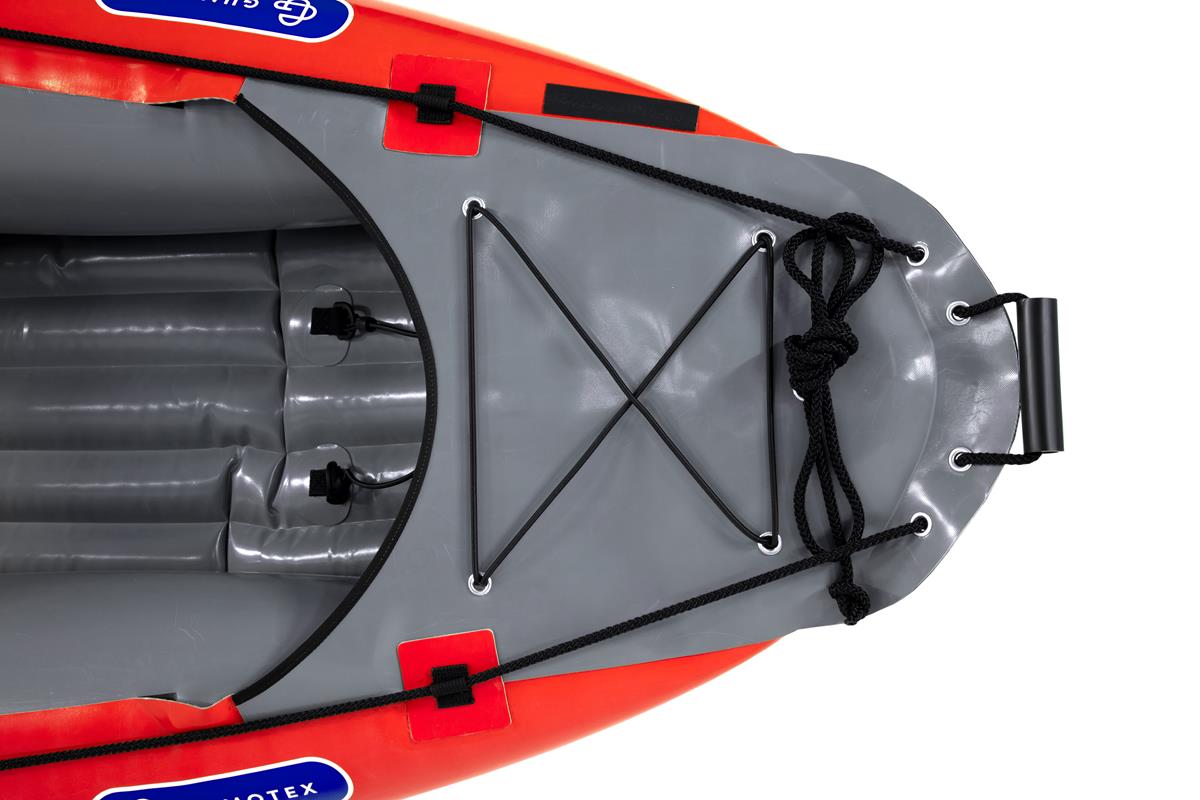 Gumotex Rush 2 Eine Buglänge voraus! Die innovative Hybrid-Konstruktion aus Luftkammer-System und stabilisierender Drop-Stitch Technologie, verleiht dem aufblasbaren Kajak seine einzigartige hydrodynamische Form und Steifigkeit. Das Ergebnis: Eine exzellente Wasserlage, leichte Manövrierbarkeit und schnelle Laufeigenschaft. Nicht nur auf dem Wasser lässt es sich leicht manövrieren: Auch an Land ist es, dank geringem Gewicht und kleinem Packmaß, einfach zu transportieren. Nehmen Sie Platz und genießen Sie maximalen Sitzkomfort. Die bequemen Sitze und Fußstützen sorgen in Kombination mit einer großzügig bemessenen Beinfreiheit dafür, dass Sie auch bei langen Touren entspannt an’s Ziel kommen.Maximale Flexibilität: Allein paddeln, oder zu zweit? RUSH bietet Ihnen durch das durchdachte Sitz-Beschlagsystem die Möglichkeit zur individuellen Sitzverstellung/-installation.Ob für den Einsatz auf dem See, Meer, in Küstennähe oder auf dem Fluss (bis WW Stufe 2): Das Kajak lässt sich nicht nur vielseitig einsetzen, sondern mit weiterem Zubehör, wie einem abnehmbaren Verdeck und einer Steueranlage, ganz nach Ihren Wünschen ausstatten.