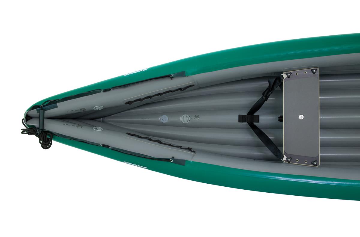 Gumotex Rush 2 Eine Buglänge voraus! Die innovative Hybrid-Konstruktion aus Luftkammer-System und stabilisierender Drop-Stitch Technologie, verleiht dem aufblasbaren Kajak seine einzigartige hydrodynamische Form und Steifigkeit. Das Ergebnis: Eine exzellente Wasserlage, leichte Manövrierbarkeit und schnelle Laufeigenschaft. Nicht nur auf dem Wasser lässt es sich leicht manövrieren: Auch an Land ist es, dank geringem Gewicht und kleinem Packmaß, einfach zu transportieren. Nehmen Sie Platz und genießen Sie maximalen Sitzkomfort. Die bequemen Sitze und Fußstützen sorgen in Kombination mit einer großzügig bemessenen Beinfreiheit dafür, dass Sie auch bei langen Touren entspannt an’s Ziel kommen.Maximale Flexibilität: Allein paddeln, oder zu zweit? RUSH bietet Ihnen durch das durchdachte Sitz-Beschlagsystem die Möglichkeit zur individuellen Sitzverstellung/-installation.Ob für den Einsatz auf dem See, Meer, in Küstennähe oder auf dem Fluss (bis WW Stufe 2): Das Kajak lässt sich nicht nur vielseitig einsetzen, sondern mit weiterem Zubehör, wie einem abnehmbaren Verdeck und einer Steueranlage, ganz nach Ihren Wünschen ausstatten.