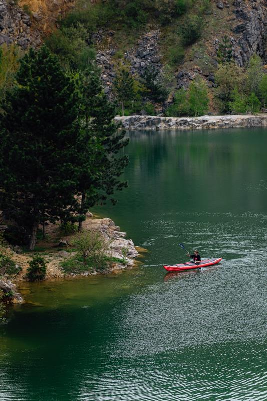 - Der Kajakboden besteht aus einem widerstandsfähigen Gummi-Drop-Stitch-Material, das die Langlebigkeit traditioneller Außenmaterialien mit den Vorteilen der Drop-Stitch-Technologie kombiniert.