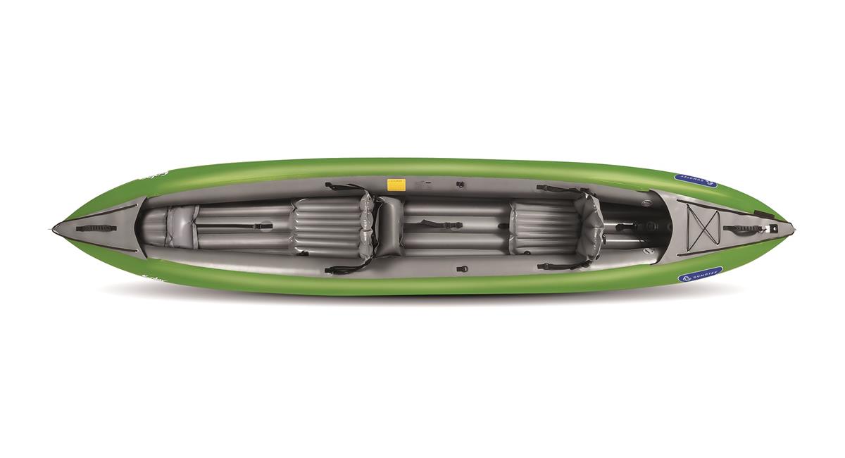 Gumotex Safari 330 Das SAFARI 330 ist mit einem selbstlenzenden Boden ausgestattet und eignet sich perfekt für Wildwasserfahrten bis Schwierigkeitsstufe 3 und Fahrten in Küstennähe. Es kommt in einer längeren und breiteren Bauweise daher und bietet auch groß gewachsenen Paddlern einen hohen Sitzkomfort. Durch die deutlich bessere Fahrstabilität, gelingt es auch Anfängern, Stromschnellen sicher zu durchfahren. Unter den Gepäckseilen an Bug und Heck, können persönliche Sachen in einem wasserdichten Pack-sack verstaut werden.