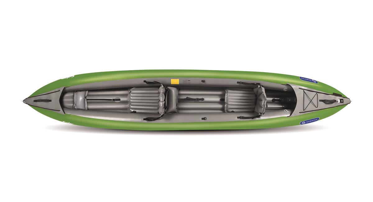 Gumotex Thaya Das revolutionäre Thaya mit einer Kombination aus unserem speziellen Nitrilon-Material und der Dropstitch-Technologie zeichnet durch eine hervorragende Formstabilität und leichte Manövrierung aus. Die einzigartige Verbindung der aufblasbaren Seitenschläuche und der modernen Dropstitch-Technologie schafft eine universelle Kombination, die dem Nutzer einen hohen Komfort und ein leichtes Handling bietet. Das Thaya lässt sich nach einer Bootstour leicht verpacken und ist sehr leicht. Es ist ideal für die Nutzung auf Seen und Flüssen geeignet und lässt sich auch bei Wildwasserstufe 2 noch angenehm fahren. Es kann mit 1 bis 2 Erwachsenen oder mit 2 Erwachsenen und einem Kind gepaddelt werden.*Die Dropstitch-Technologie basiert auf der Verbindung der oberen und unteren Schichten des Gewebes mit Tausenden von Polyesterfasern. Dieses, mit einer luftdichten Beschichtung versehene Gewebe, ist von beiden Seiten mit einem widerstandsfähigen NITRILON®-Material geschützt. Dank der Tausenden Fasern, die die beiden Schichten zusammenhalten, können Produkte aus Drop-stitch einen hohen Druck aushalten. Durch aufpumpen wird das Material sehr fest und kommt der Beschaffenheit eines Festkajaks sehr nahe, wobei das Packmaß weiterhin klein bleibt.