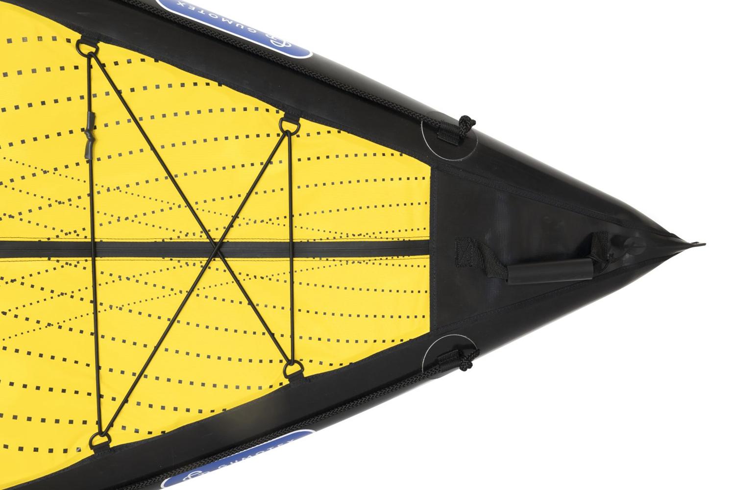 Gumotex K2 K2 ist ideal für Fahrten im Wildwasser mittlerer und höherer Schwierigkeitsgrade. Durch den stabilen Kajakrumpf wird auch Wildwasser-Neulingen die Fahrt erleichtert. Der selbstlenzende Boden lässt eingetretenes Wasser schnell abfließen. Die Schenkelgurte ermöglichen den Paddlern im Notfall ein schnelles Verlassen des Kajaks.