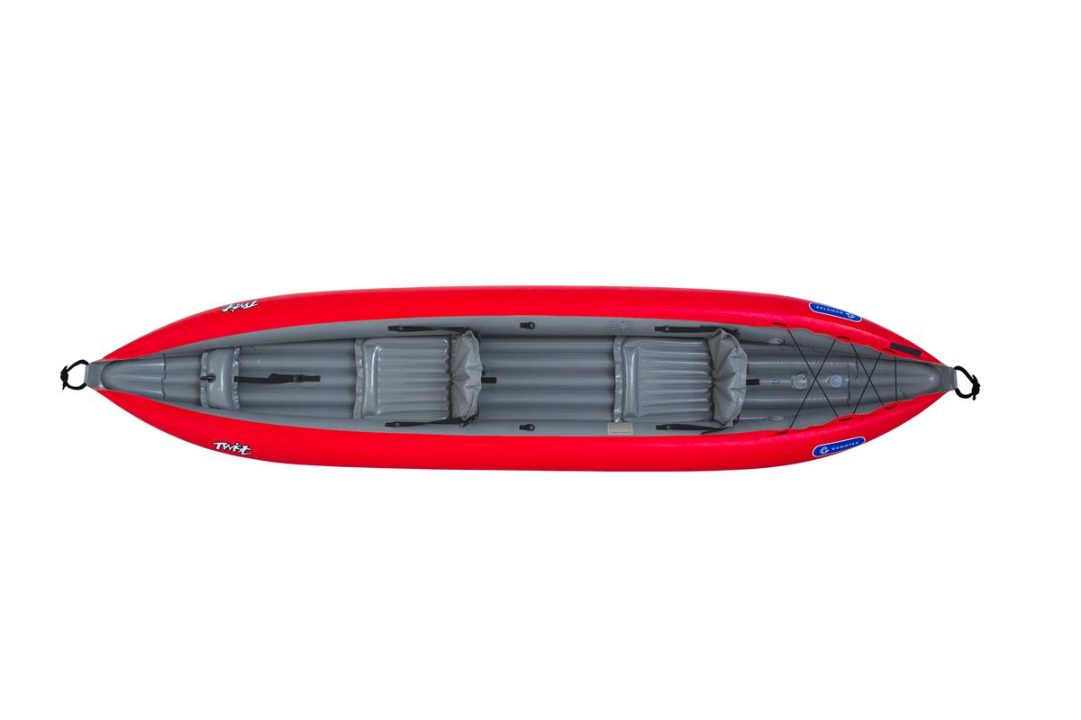 Gumotex Thaya Das revolutionäre Thaya mit einer Kombination aus unserem speziellen Nitrilon-Material und der Dropstitch-Technologie zeichnet durch eine hervorragende Formstabilität und leichte Manövrierung aus. Die einzigartige Verbindung der aufblasbaren Seitenschläuche und der modernen Dropstitch-Technologie schafft eine universelle Kombination, die dem Nutzer einen hohen Komfort und ein leichtes Handling bietet. Das Thaya lässt sich nach einer Bootstour leicht verpacken und ist sehr leicht. Es ist ideal für die Nutzung auf Seen und Flüssen geeignet und lässt sich auch bei Wildwasserstufe 2 noch angenehm fahren. Es kann mit 1 bis 2 Erwachsenen oder mit 2 Erwachsenen und einem Kind gepaddelt werden.*Die Dropstitch-Technologie basiert auf der Verbindung der oberen und unteren Schichten des Gewebes mit Tausenden von Polyesterfasern. Dieses, mit einer luftdichten Beschichtung versehene Gewebe, ist von beiden Seiten mit einem widerstandsfähigen NITRILON®-Material geschützt. Dank der Tausenden Fasern, die die beiden Schichten zusammenhalten, können Produkte aus Drop-stitch einen hohen Druck aushalten. Durch aufpumpen wird das Material sehr fest und kommt der Beschaffenheit eines Festkajaks sehr nahe, wobei das Packmaß weiterhin klein bleibt.