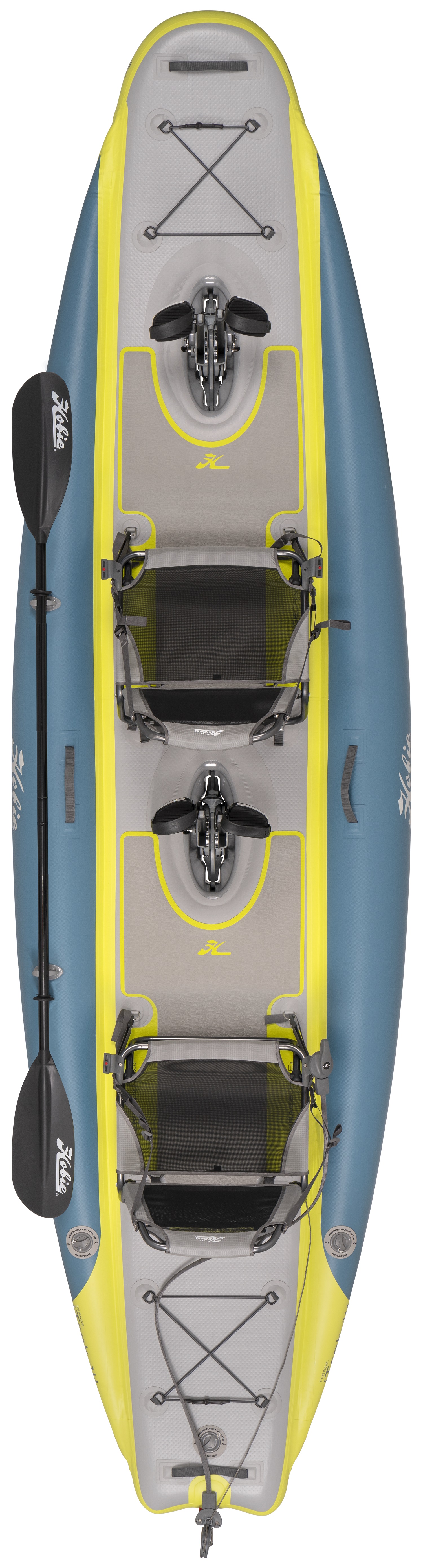 Das Mirage iTrek 14 Duo ist das größte und geräumigste aufblasbare Pedalkajak aus der iTrek-Serie von Hobie, speziell konzipiert für zwei Personen. Dank seines durchdachten Designs und der robusten Dropstitch-Konstruktion bietet es ideale Voraussetzungen für gemeinsame Abenteuer auf dem Wasser – und lässt sich trotzdem platzsparend verstauen und transportieren.