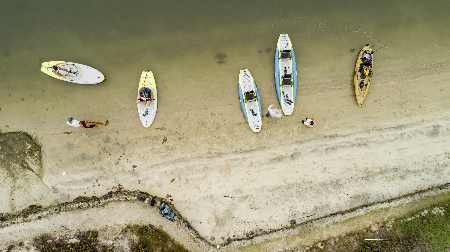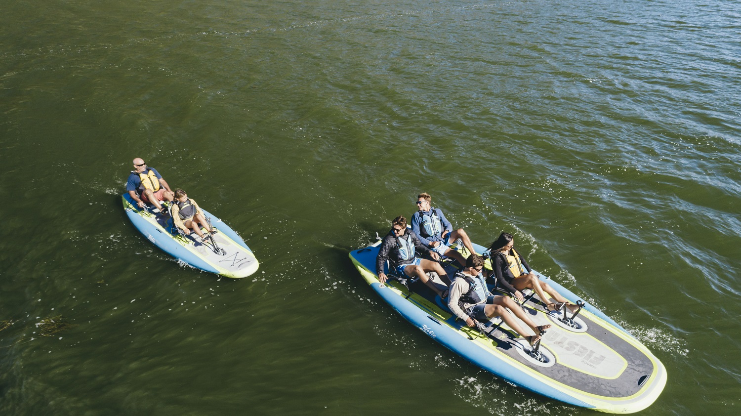 Jeweils ein Antrieb pro Person für effizientes Vorwärts-/Rückwärtsfahren. - Modifizierter Antriebsschacht (für die Aufnahme von Bimini und Segel)