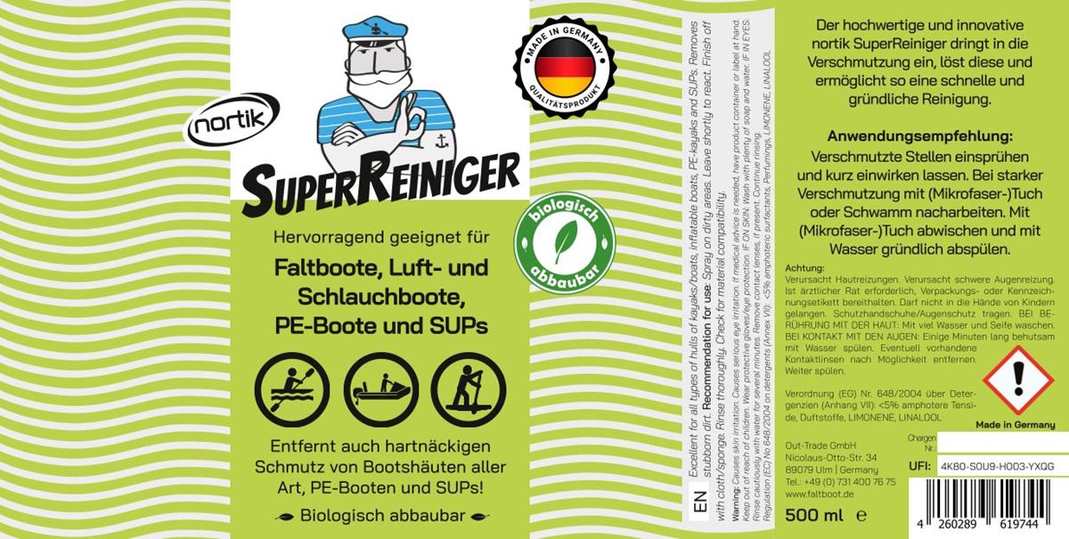 Der nortik SuperReiniger ist der perfekte Reiniger für Bootshäute, PE-Boote, Luftboote und viele weitere Oberflächen. Er entfernt mühelos hartnäckigen Schmutz, dringt tief ein und sorgt für eine gründliche, schnelle Reinigung. Biologisch abbaubar und "Made in Germany"!