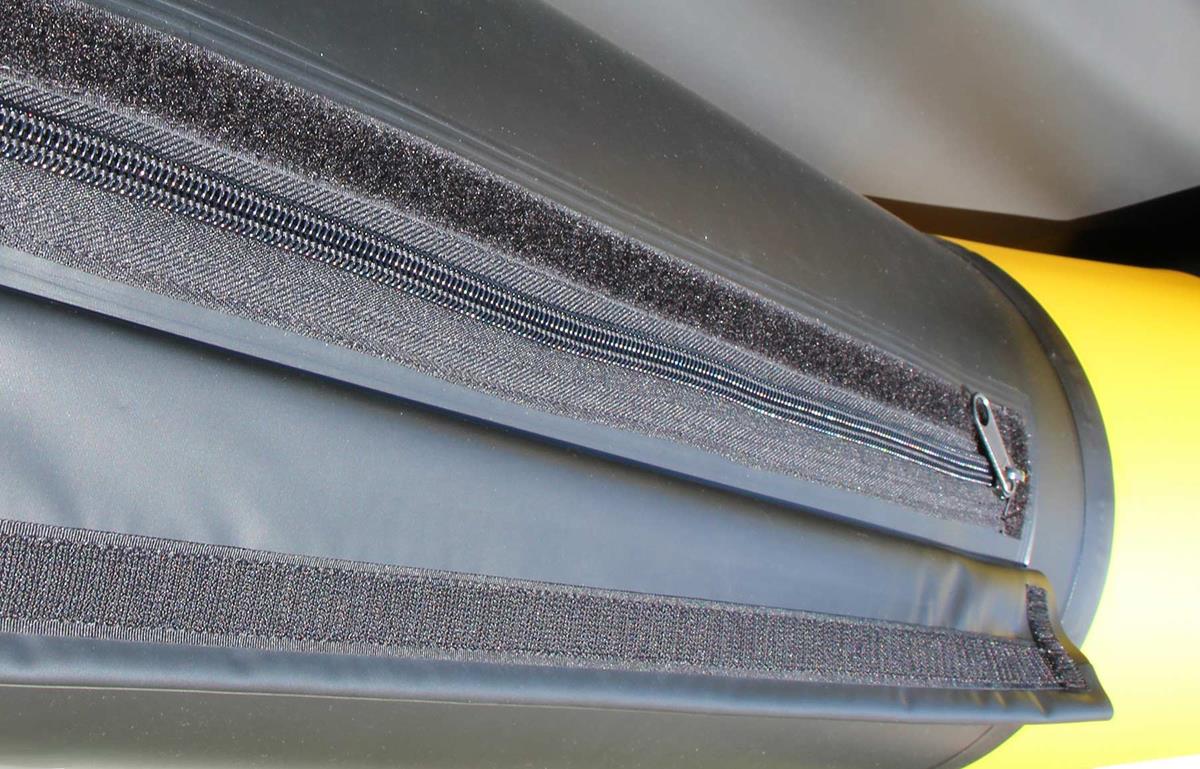 - Gepäck wird im Luftschlauch verstaut, wodurch der Innenraum des Rafts frei bleibt.