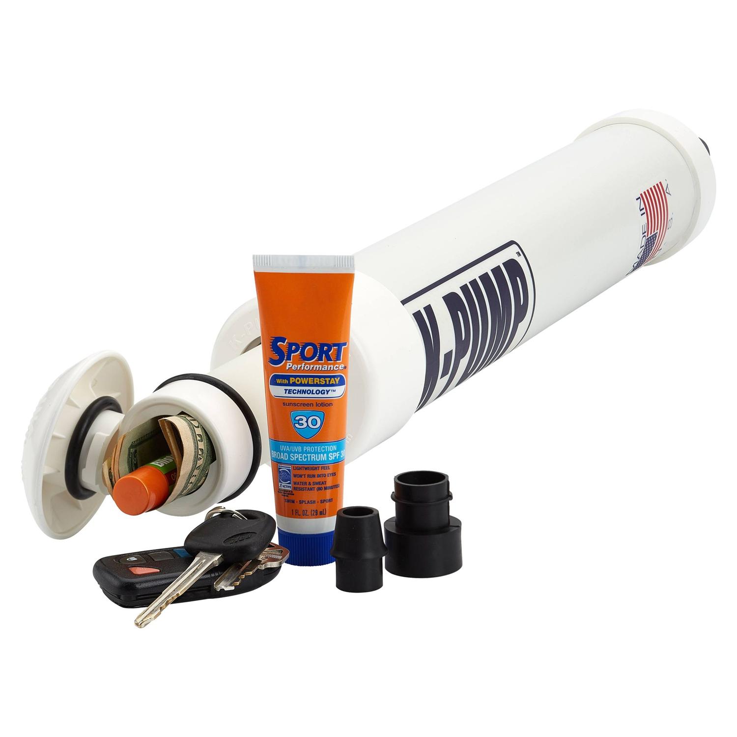Innovative Cache Cap: Wasserdichter Stauraum im Pumpenschaft – ideal für Adapter, Ventilschlüssel oder kleine Erste-Hilfe- und Reparaturutensilien
