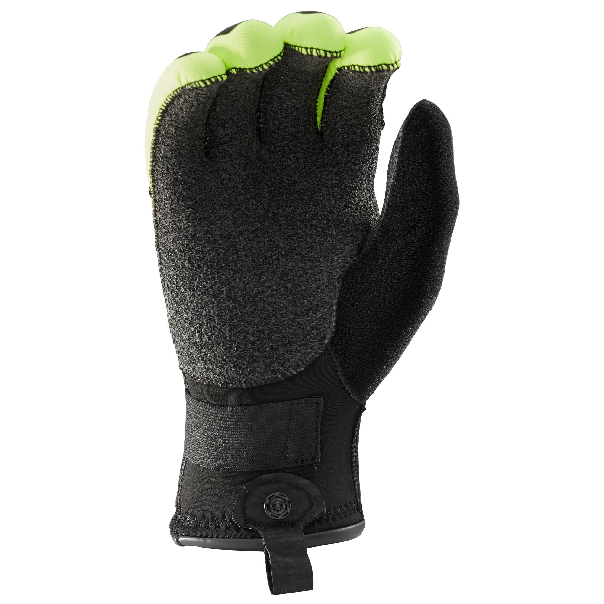 NRS Maverick Gloves - Neoprenhandschuh Einer unserer beliebtesten Kaltwetterhandschuhe, NRS Maverick Gloves, kombiniert eine Außenseite aus rohem Neopren mit einer Innenseite aus Vier-Wege-Stretch für maximale Wärme und Fingerfertigkeit.- 2-mm-Rohneopren-Außenseite mit Titan-Laminat-Kleber sorgt für viel Wärme und lässt Wasser ab, wodurch Verdunstungskühlung eliminiert wird.- Das 4-Wege-Stretch Extend™-Innenfutter verbessert die Fingerfertigkeit.- RawHide™-Handfläche bietet unschlagbaren Grip und kombiniert mit flüssigkeitsversiegelten Nähten, um einen vollständigen wasserdichten Schutz zu bieten.- Vorgekrümmtes Fingerdesign verhindert Ermüdung der Hand.- Unser innovatives HydroCuff™-Handgelenk verhindert das Tropfen der Paddel und hält Wasser fern.- Druckknöpfe an den Handgelenken halten die Handschuhe zusammen.Wichtiger Hinweis: Um den Handschuh anzuziehen, rollen Sie zuerst die Stulpe hoch. Schieben Sie dann Ihre Hand mit einer Drehbewegung hinein und rollen Sie die Manschette zurück über Ihren Unterarm. Um den Handschuh auszuziehen, schieben Sie den Daumen der anderen Hand in die Manschette, entlang der Handfläche und schieben Sie den Handschuh ab.Details Gewicht: 171 gVerwendung und Bedingungen der Handschuhe:Isolierend: KaltWasserdichtMaterial: 2 mm NeoprenNähte: Geklebt & BlindstichGetapte Nähte: JaHandflächenmaterial: RawHide-HandflächeHandgelenkverschluss: HydroCuff™Geschlechtsgrößen: UnisexMerkmale:Flüssig getapte NähteWasserdichtPairing-Schnappverschlüsse am HandgelenkGrößentabelle SizeWidth (cm)Length (cm) XS 7.6 16.5 S 8.3 17.8 M 8.9 19.1 L 9.5 19.7 XL 10.2 20.3 XXL 11.4 21.6 Show Imperial Specs