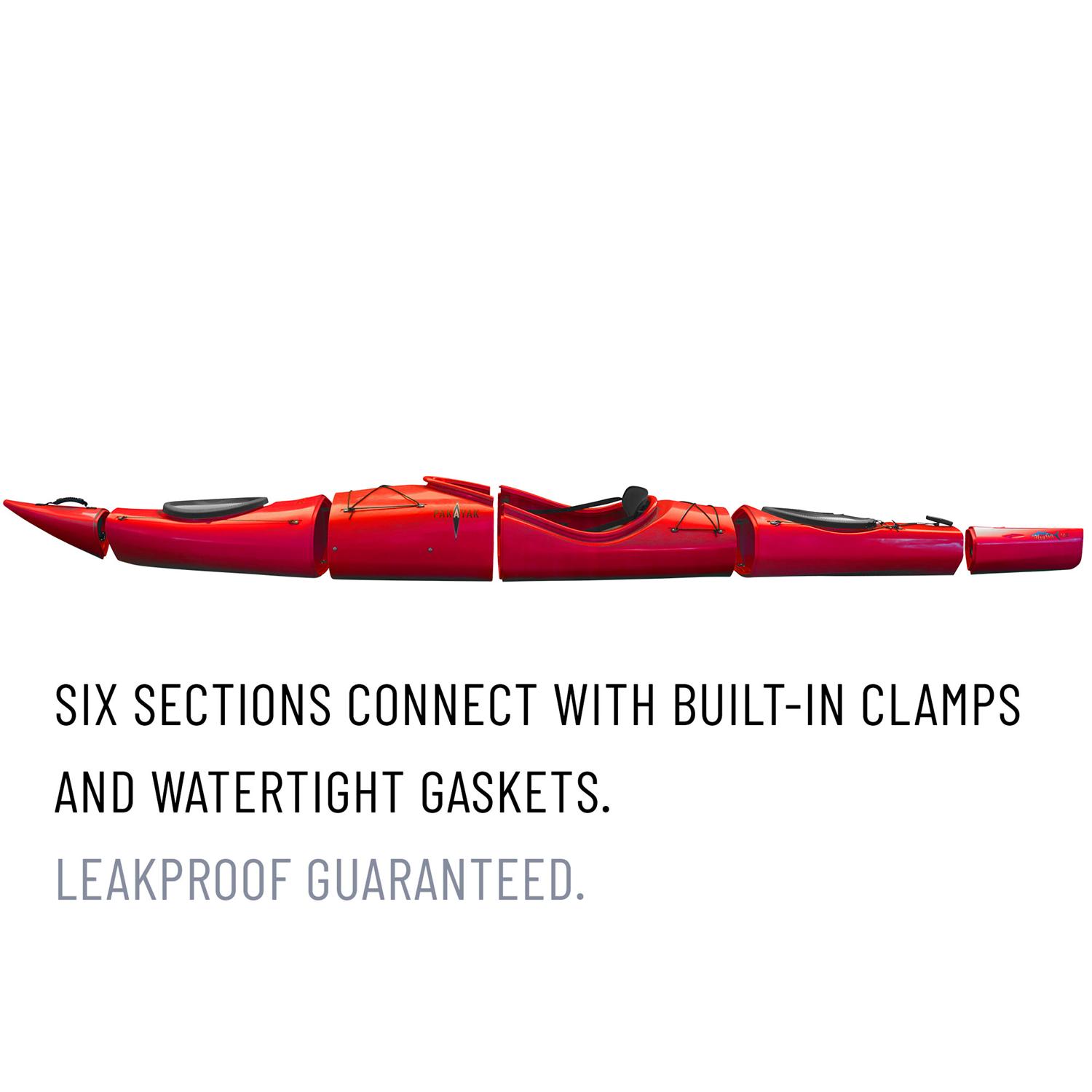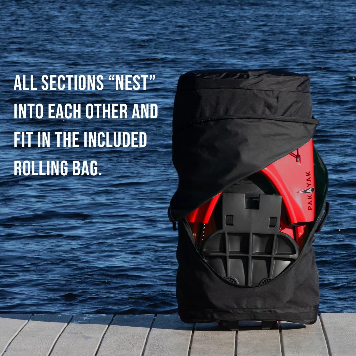 Mit seinem innovativen Stapelsystem lässt sich das Kajak platzsparend in sich selbst verstauen und passt in eine praktische Packtasche – ideal für Paddler:innen mit wenig Stauraum oder ohne Transportmöglichkeiten für ein klassisches Festboot.